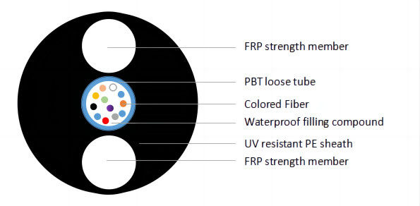 اثنان من FRP كعضو قوة مطبق على الغلاف الداخلي ، يتم استكمال الكابل بغلاف خارجي PE.