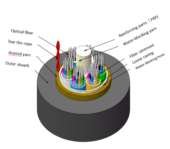 ① The reasonable design and precise control of the excess length of the optical fiber in the loose tube and the cabling method endow the optical cable with excellent mechanical and environmental performance;