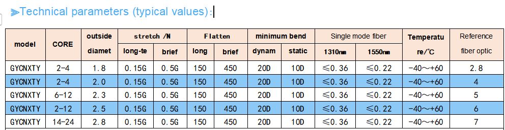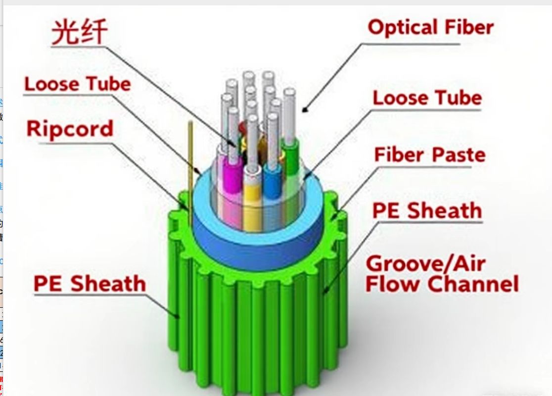 كابل بصري خارجي بالنفخ الهوائي للاتصالات بدون مكونات معززة، نوع الأنبوب المركزي المجمع، غلاف من البولي إيثيلين عالي الكثافة. هيكل الكابل البصري هو تضمين ألياف بصرية أحادية النمط أو متعددة الأنماط في أنبوب فضفاض مركب مقاوم للماء من البلاستيك عالي المعامل، ووضع الأنبوب الفضفاض في الموضع المركزي، وتضمين حبل تمزق، وبثق غلاف البولي إيثيلين عالي الكثافة لتشكيل الكابل.