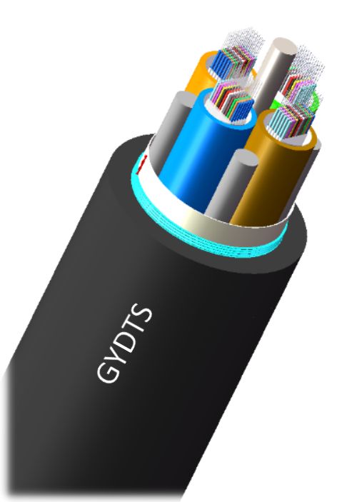 تتمثل بنية الكابل الضوئي في إدخال شريط ألياف ضوئية أحادية الوضع أو متعددة الأوضاع في أنبوب فضفاض مصنوع من البلاستيك عالي المعامل مملوء بمركب مقاوم للماء. مركز قلب الكابل هو جزء تقوية معدني. بالنسبة لبعض الكابلات الضوئية ذات أعداد معينة من النوى، يتم بثق طبقة وسادة من البولي إيثيلين خارج الجزء المركزي المعدني المقوي. يتم لف الأنابيب الفضفاضة (وحبال التعبئة) حول العنصر المركزي المقوي لتشكيل قلب كابل مضغوط ومستدير. يتم ملء الفجوات الموجودة داخل قلب الكابل بمركب مانع لتسرب المياه، ثم يتم بثق غلاف معدني مرتبط بالبولي إيثيلين لتشكيل الكابل.