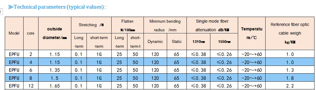 تتكون بنية الكابل من ألياف أحادية النمط أو متعددة الأنماط مرتبة بإحكام (والتي قد تحتوي على ألياف حشو) تشكل تكوينًا منتظمًا. بعد معالجة الراتنج في حزمة ألياف، يتم وضع الحزمة مركزيًا وبثقها بغلاف من البولي إيثيلين عالي الكثافة.